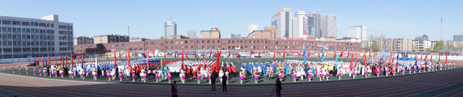 學(xué)院領(lǐng)導(dǎo)與學(xué)生方隊、觀眾和志愿者合影 | |
