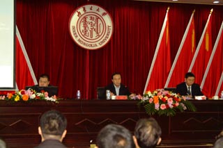 2012年3月16日下午,學(xué)院邀請交通廳黨組書記、廳長、內(nèi)蒙古大學(xué)客座教授江維來我院作《內(nèi)蒙古交通運(yùn)輸?shù)默F(xiàn)狀與發(fā)展》學(xué)術(shù)報(bào)告。報(bào)告會(huì)由學(xué)院院長柴金義教授主持。