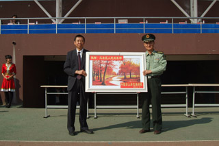 學院領導向玉泉區(qū)人民武裝部贈送牌匾 |