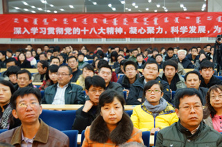 為了深入學(xué)習(xí)貫徹黨的十八大精神,把我校廣大師生員工思想和行動(dòng)統(tǒng)一到黨的十八大精神上來(lái),把力量凝聚到實(shí)現(xiàn)黨的十八大確定的各項(xiàng)任務(wù)上來(lái),努力辦好人民滿意的教育,推動(dòng)學(xué)??茖W(xué)發(fā)展,學(xué)校于2012年11月20日下午3:00在學(xué)術(shù)會(huì)議中心9號(hào)會(huì)議室召開全校傳達(dá)貫徹黨的十八大精神干部大會(huì)。