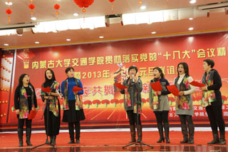 12月27日下午,學(xué)院在交通樓多功能廳舉辦2013年新年聯(lián)誼會暨工會表彰大會。我院黨委書記孫智憑,院長柴金義,常務(wù)副院長董平,副院長孫恒,副院長武鈞,黨委委員、科研處處長李宏,黨委委員、教務(wù)處處長趙志蒙出席表彰大會并為獲獎單位和個人頒獎。黨委副書記、紀(jì)委書記白托婭主持會議。全院200余名教職工參加了聯(lián)誼會。