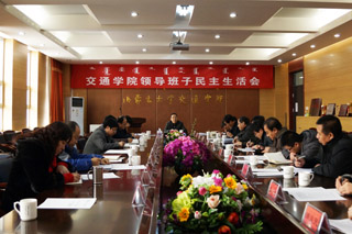 1月14日上午,按照上級(jí)文件精神,結(jié)合學(xué)院實(shí)際,交通職業(yè)技術(shù)學(xué)院(交通學(xué)院)黨委在南校區(qū)交通樓A439會(huì)議室召開了主題為“學(xué)習(xí)貫徹黨的十八大精神,推動(dòng)學(xué)院內(nèi)涵建設(shè)與發(fā)展”領(lǐng)導(dǎo)班子民主生活會(huì)。 學(xué)校黨委書記侯元 會(huì)場(chǎng) 交通學(xué)院院長柴金義 學(xué)校黨委組織部部長張士偉 會(huì)場(chǎng) 會(huì)場(chǎng)