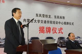 “東風雪鐵龍、東風標致內(nèi)蒙古大學交通學院培訓中心”成立,標志著我院與神龍汽車有限公司的教育培訓合作的全面啟動。