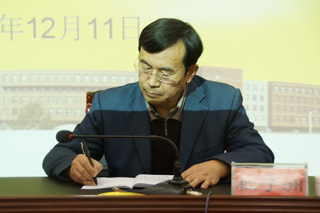 自治區(qū)教育實踐活動第十督導(dǎo)組副組長杜子洲、成員周立軍,學院黨委書記孫智憑、院長柴金義、常務(wù)副院長董平、黨委副書記、紀委書記白托婭、副院長孫恒、副院長武鈞出席會議,學院副處級以上干部、副高級以上教師代表、離退休教師代表及學生代表等共70余人參加了會議。