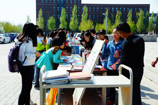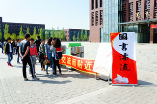 本次活動持續(xù)2天在南校區(qū)圖書館樓前廣場舉行,主要內(nèi)容有:組織各大出版社書目參展,讓師生選出自己喜歡和需要的書籍,由圖書館訂購所選圖書;現(xiàn)場師生在宣傳橫幅上簽名,弘揚(yáng)讀書文化;參加“淘書會友”活動,進(jìn)行圖書交換以提高圖書利用率等。