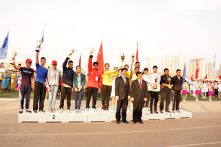 與會(huì)領(lǐng)導(dǎo)為獲得學(xué)生男子團(tuán)體前六名的單位頒獎(jiǎng) |