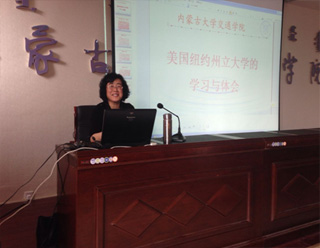 宋慧英副教授通過專家評審和國家留學基金委面試,于2013年8月21至2014年2月20日,作為出國訪問學者在美國紐約州立大學奧爾巴尼分校(State University of New York at Albany)進行為期6個月的研究與交流。出國訪問學者是國家留學基金管理委員會設(shè)立的 “西部地區(qū)人才培養(yǎng)特別項目”,目的是配合國家西部大開發(fā)戰(zhàn)略,加快我國西部地區(qū)急需人才和高層次人才的培養(yǎng),支持地方經(jīng)濟和教育、科研事業(yè)的發(fā)展。