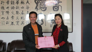 學院黨委副書記、紀委書記白托婭(右)向特邀黨建組織員白文生(左)同志頒發(fā)聘書