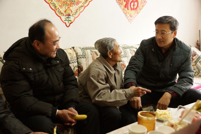 學(xué)院黨委書記孫智憑(右一),副院長(zhǎng)武鈞(右三)慰問(wèn)離休干部拉巴哈(右二)同志  |