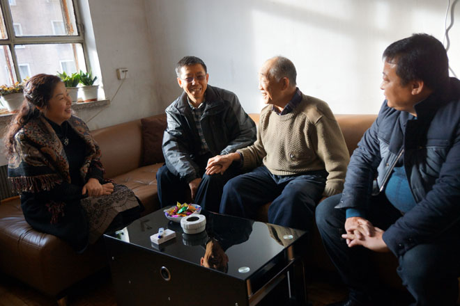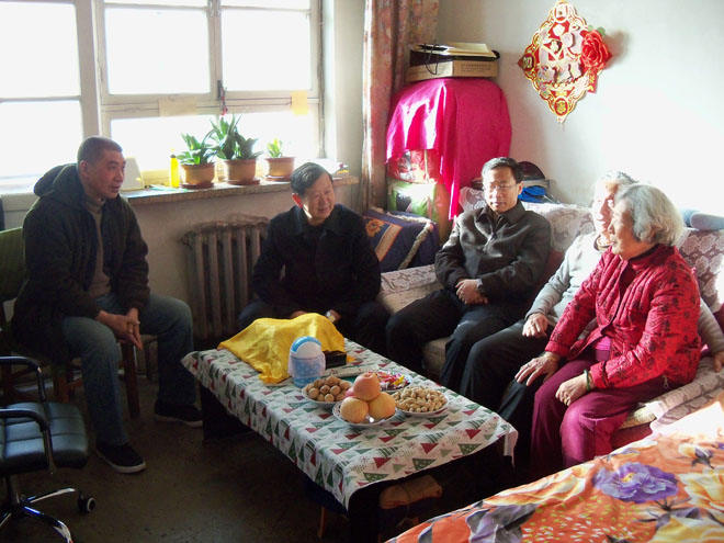 學(xué)院院長(zhǎng)柴金義(左二),黨委副書記、紀(jì)委書記白托婭(左一)慰問(wèn)離休干部李成柏(左三)同志  |