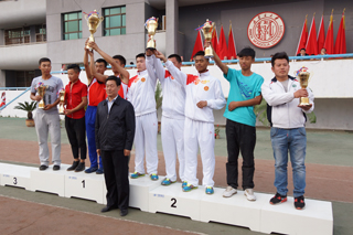 與會(huì)領(lǐng)導(dǎo)為獲得學(xué)生男子團(tuán)體前六名的單位頒獎(jiǎng)  |
