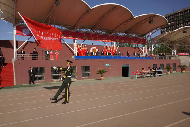 內(nèi)蒙古大學(xué)副校長張吉維,內(nèi)蒙古大學(xué)黨委委員、交通學(xué)院黨委書記孫智憑,內(nèi)蒙古陸軍預(yù)備役步兵第30師副參謀長王磊、軍務(wù)科長孟昭輝,內(nèi)蒙古大學(xué)黨政辦副主任溫毅剛、保衛(wèi)處副處長金山;內(nèi)蒙古大學(xué)交通學(xué)院常務(wù)副院長董平,黨委副書記、紀(jì)委書記白托婭,副院長孫恒,副院長武鈞,黨委委員、教務(wù)處處長趙志蒙以及相關(guān)職能部門負(fù)責(zé)人、系部黨總支負(fù)責(zé)人出席開幕式并在主席臺就坐。我院師生2300余人參加了開幕式。