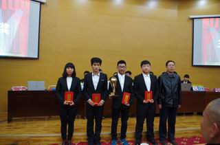 圖為蘇赫科長(zhǎng)、蘭波副科長(zhǎng)為汽車工程系代表隊(duì)頒獎(jiǎng) |