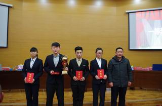 圖為高飛處長(zhǎng)為決賽第一名工程管理系代表隊(duì)頒獎(jiǎng) |