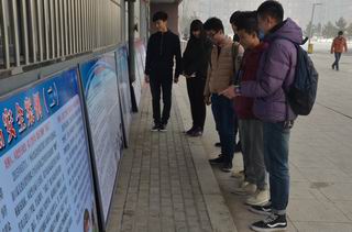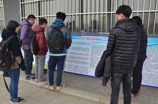 圖為學(xué)生在認(rèn)真學(xué)習(xí)安全知識(shí)(展板) |