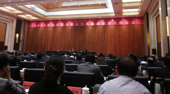 3月8日,自治區(qū)黨委高校工委、教育廳黨組在呼和浩特召開2016年全區(qū)教育系統(tǒng)黨風(fēng)廉政建設(shè)工作會議,深入貫徹落實黨的十八屆五中全會、中央紀(jì)委六次全會,貫徹落實自治區(qū)黨委九屆十四次全會和自治區(qū)紀(jì)委九屆七次會議精神以及全國教育系統(tǒng)黨風(fēng)廉政建設(shè)工作會議精神,總結(jié)2015年全區(qū)教育系統(tǒng)黨風(fēng)廉政建設(shè)工作,安排部署2016年工作任務(wù)。