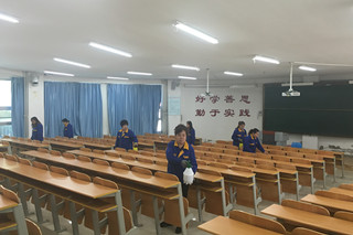后勤人員對教學樓、交通樓內走廊、樓梯進行消毒 |