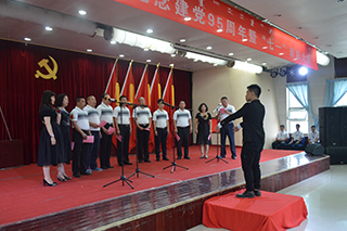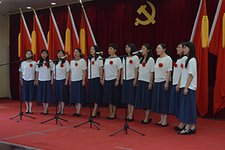 紀念暨表彰大會后,孫智憑書記和化學化工學院退休教師趙薇即興合唱了一首《長江之歌》獻禮黨的生日。各基層黨組織也向偉大的中國共產(chǎn)黨奉獻了精心準備的生日禮物——“愛國、愛黨、愛人民”小合唱和配樂詩朗誦。