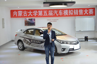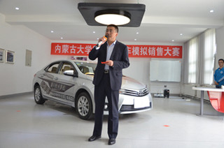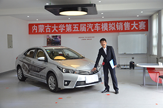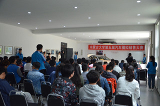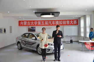 2016年5月13日下午,內(nèi)蒙古大學(xué)第五屆“中升豐田杯”汽車模擬銷售大賽決賽在交通樓B101汽車展廳開(kāi)幕。