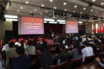5月4日下午,2018年呼和浩特征兵宣傳教育進高校暨優(yōu)秀大學生士兵巡回演講走進我院,在多功能廳舉行宣講活動。呼和浩特市警備區(qū)動員處郭存文參謀,玉泉區(qū)武裝部副部長王忠輝,我院學工處處長高飛、副處長李正濤、學生科長紀圖雅出席活動。300余名學生現(xiàn)場聆聽。