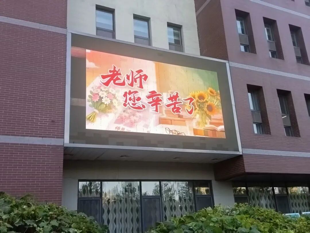 從9日晚開始,交通樓內(nèi)外五處LED顯示屏同時(shí)點(diǎn)亮,“老師,您好!”“老師,您辛苦啦!”“致敬恩師-教師節(jié)快樂”“祝全院教職工節(jié)日快樂!”等飽含深情的祝福語循環(huán)播放,營(yíng)造出濃厚的尊師重教氛圍。